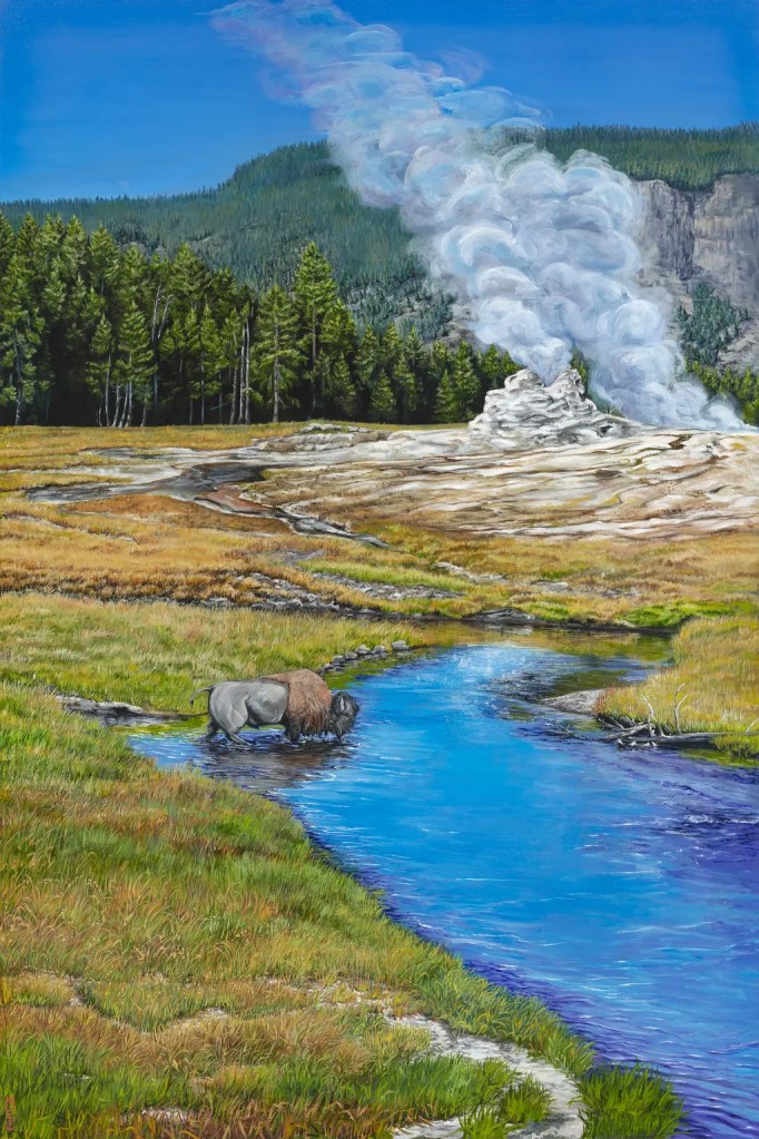 Buffalo crossing the Little Firehole River in Yellowstone2022Oil on 36 x 48Available